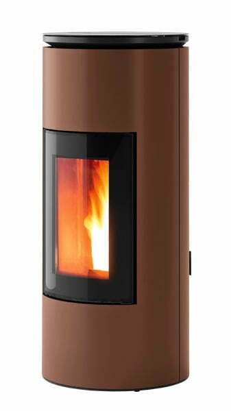 Deze stijlvolle ronde pelletkachel met dubbele deur is uitgerust met een grote ruit voor een geweldig zicht op de vlam.