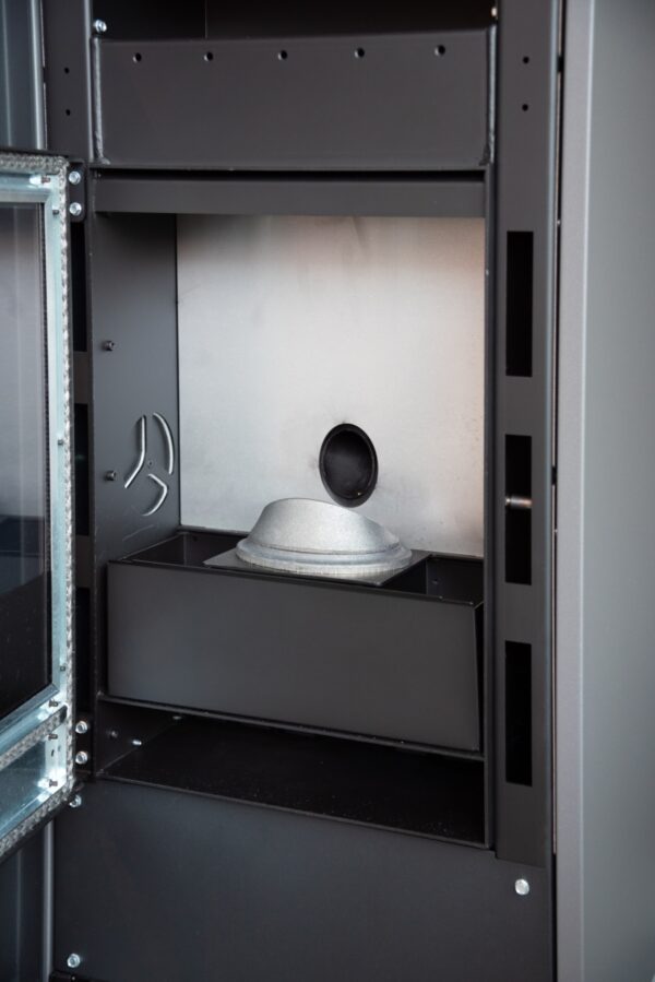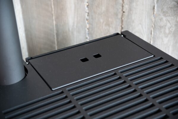 Deze pelletkachel kan zowel met een boven- als achteraansluiting aangesloten worden, zonder in te boeten op de capaciteit van de voorraadtank van 15 kg. Zo krijg je er via het bijvulluik op de bovenzijde met gemak één zak pellets in.